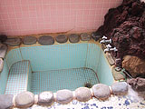 お風呂場は以前からある石風呂の雰囲気を残したまま上からタイルを張る事で亀裂や汚れを処理しました。浴槽の中も新しいタイルを張りなおしてあります。